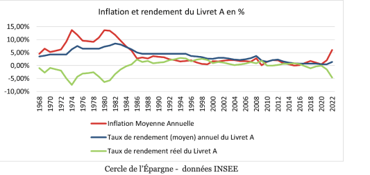 En effet, et c'est la deuxième mauvaise nouvelle : le rendement réel du Livret A sera toujours nettement dans le rouge. « Sur l'ensemble de l'année 2022, compte tenu des relèvements de la rémunération du placement, le taux moyen du Livret A a été de 1,3% soit moins que l'inflation qui s'est élevée à 5,2%, explique Philippe Crevel, directeur du Cercle de l'épargne. Le rendement réel a donc été négatif de près de 4% (3,83%). Il faut remonter aux années 1980 pour retrouver un tel rendement négatif. En passant à 3% au 1er février avec une inflation attendue à 5,5%, le rendement réel devrait du Livret A rester négatif mais dans une moindre proportion qu'en 2022 », relativise cependant l'économiste.