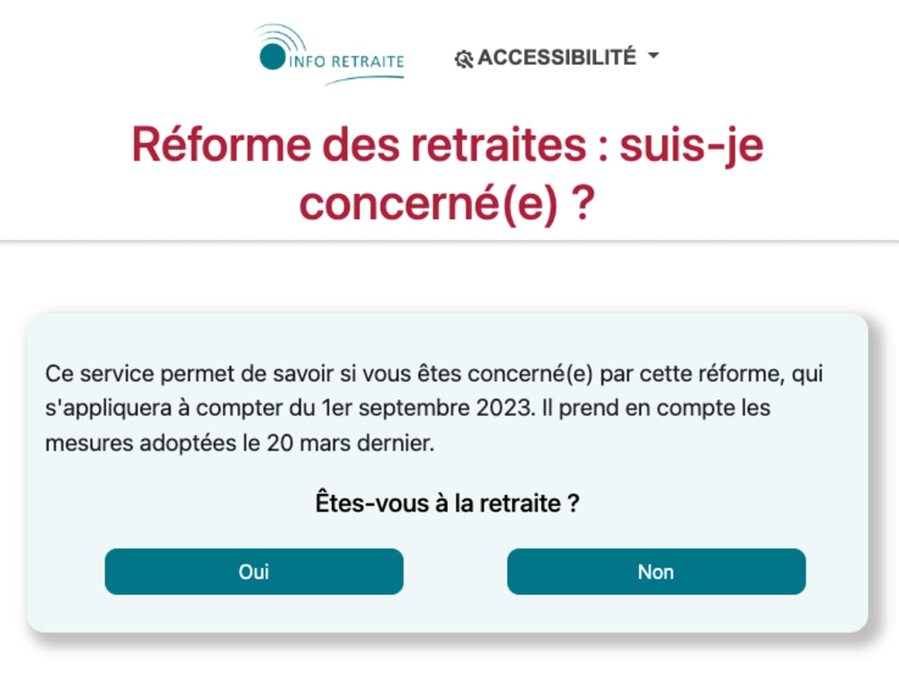 Le simulateur le plus « connu » pour mesurer l'impact de la réforme est le « Réforme des retraites : suis-je concerné(e) ? » sur le portail inter-régimes Info-Retraite.fr. Facile et rapide à utiliser, il vous invite aussi à vous connecter à votre compte personnel Info-Retraite (connexion possible via FranceConnect) afin de savoir combien vous avez de trimestres avant vos 16, 18, 20 ou 21 ans et vérifier si vous êtes éligible au dispositif « carrière longue ».